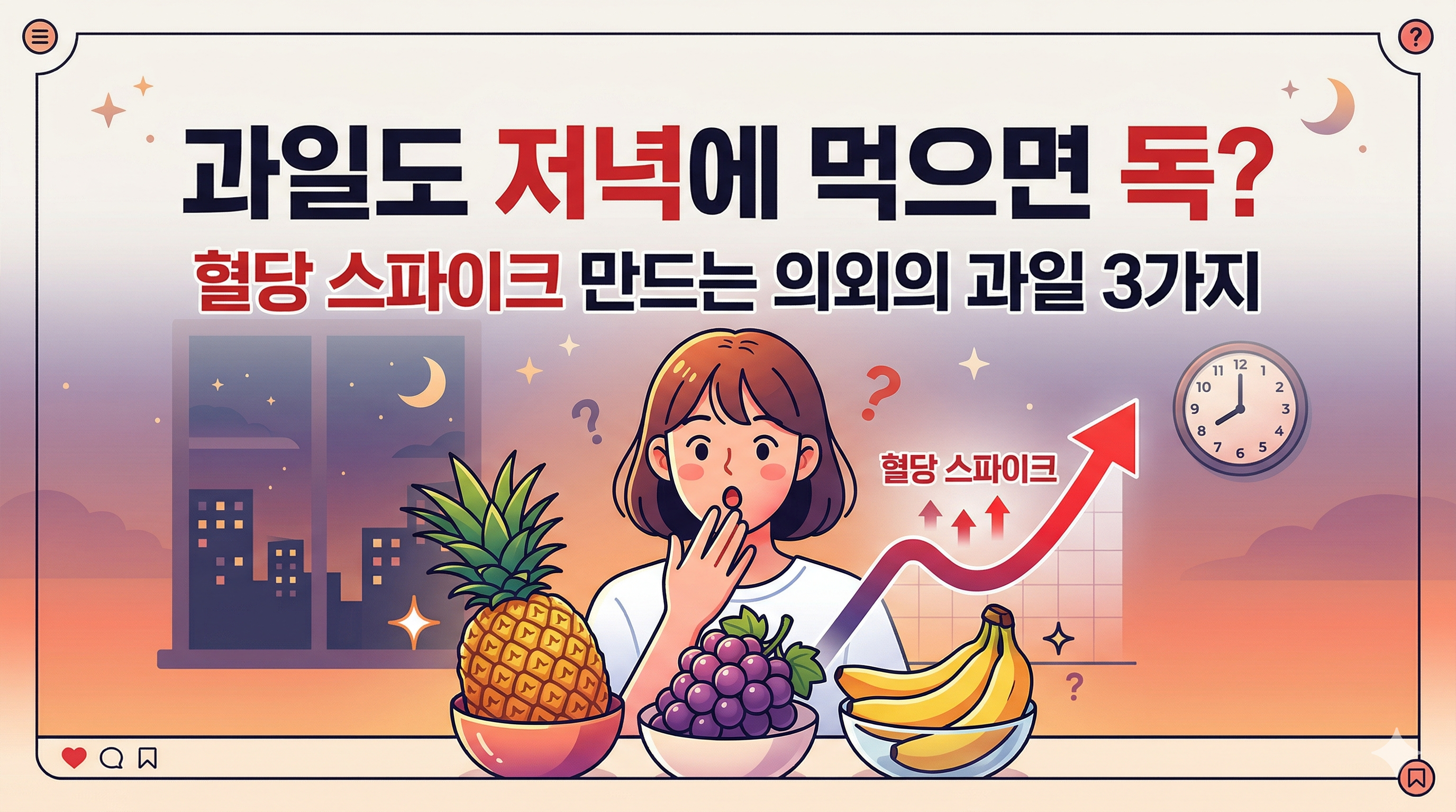특히 특정 과일들은 공복 혈당을 급격히 올리고 인슐린 저항성을 악화시키기도 합니다. 오늘은 밤에 먹으면 위험한 과일들과 혈당 스파이크를 피하는 똑똑한 과일 섭취법을 알려드립니다.