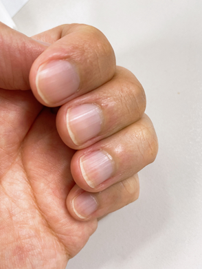 또 다른 원인으로 외부 충격에 의해 생길 수도 있습니다. 아시다시피 손톱과 발톱은 외부 충격에 취약한 부분이기 때문에 충격으로 인해 상처가 생길 수 있습니다. 이때 충격이 가해진 부분에 색소침착이 발생하여 세로줄처럼 보일 수도 있습니다. 이러한 경우, 충격으로 인한 상처나 멍이 아닌지를 명확하게 확인한 후 적절한 관리를 해주시면 도움이 됩니다.