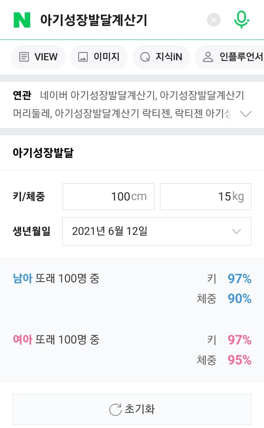 스마트폰에서 아기 성장 발달 계산기를 검색하면 아래와 같은 계산기가 나옵니다.