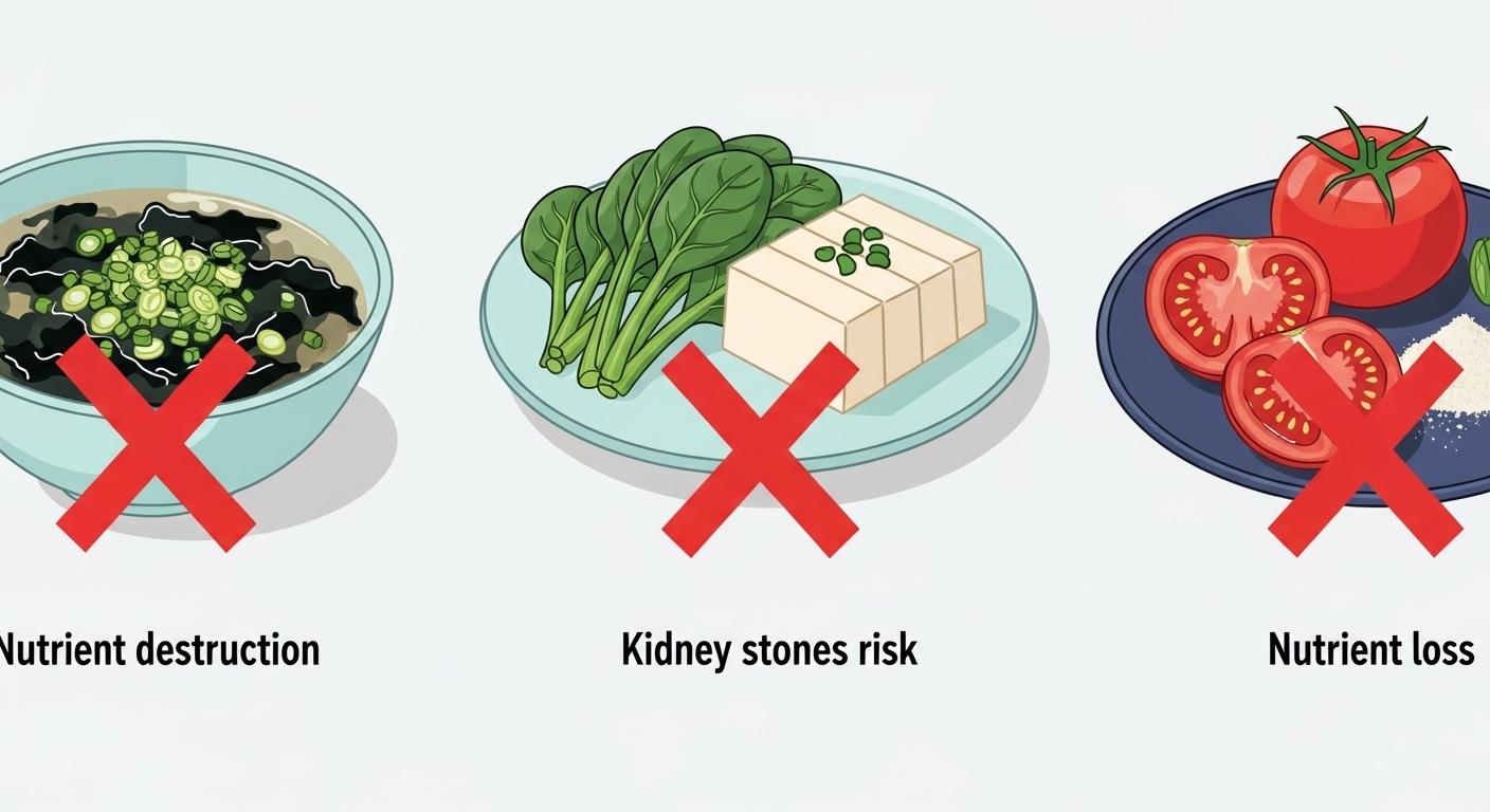 - 상극 이유: 시금치의 옥살산 성분과 두부의 칼슘이 만나면 '수산 칼슘'이 생성됩니다. 이 성분은 체내에 잘 흡수되지 않고 쌓여 신장 결석의 원인이 될 수 있습니다. 시금치는 끓는 물에 살짝 데쳐 옥살산 성분을 제거한 후 섭취하는 것이 좋습니다.