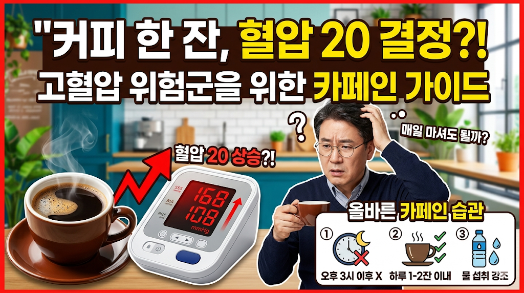 - 불면증 동반 고혈압: 카페인으로 인해 잠을 설치면 다음 날 공복 혈압이 더 크게 오릅니다. 수면 장애가 있다면 오후 2시 이후 카페인 섭취를 엄격히 제한해야 합니다.