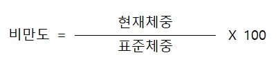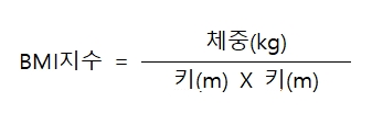 비만을 진단하기 위한 BMI지수 계산법은 체중(Kg) 나누기 [키(m) x 키(m)]입니다.