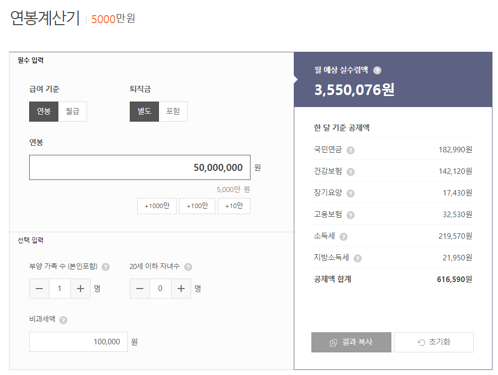 연봉계산기에서 내 연봉을 입력하면 나의 실제 수령액을 알 수 있습니다.