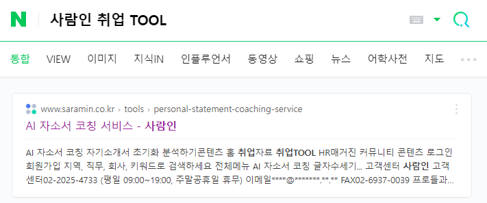 사람인 네이버 검색 화면