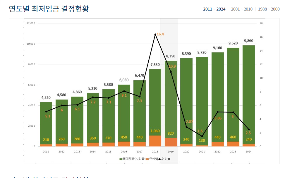 2024년 최저임금은 2023년 대비 2.5 % 인상되었습니다.
